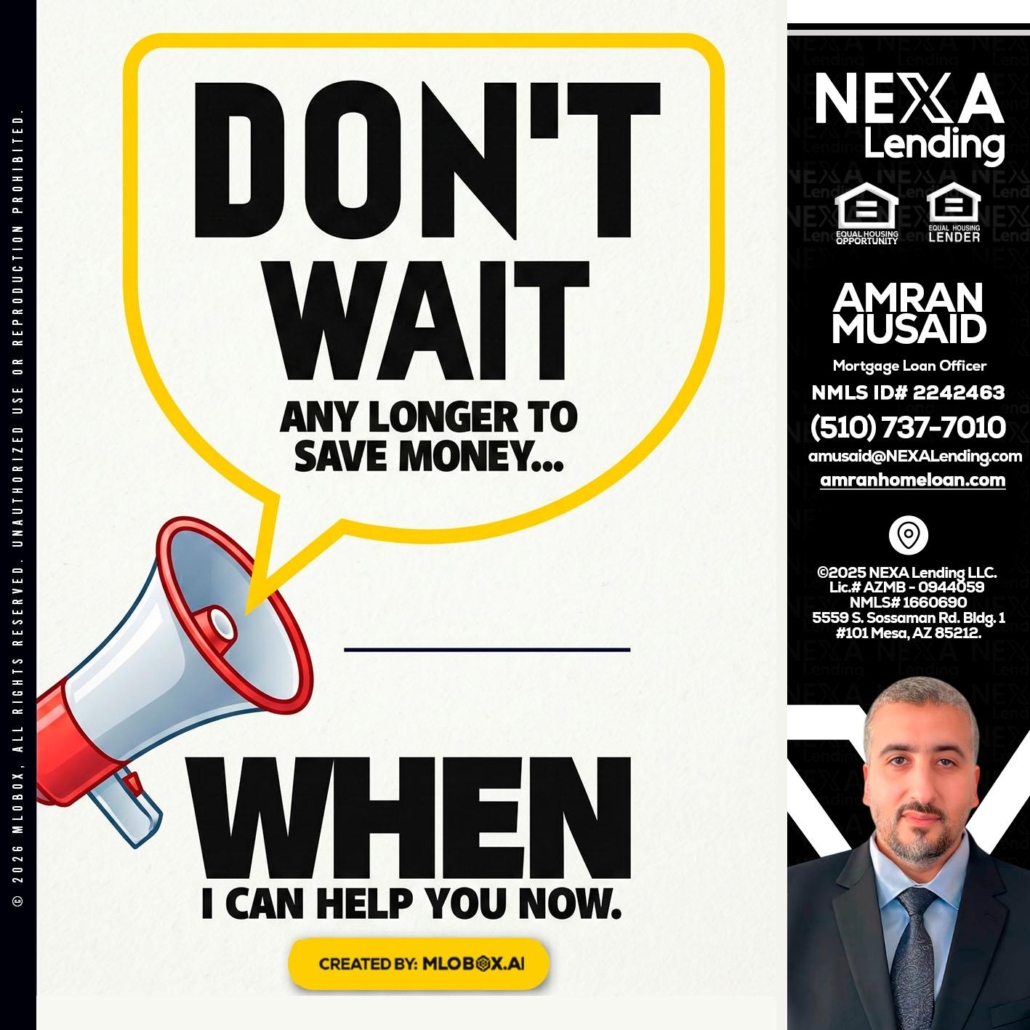 Hi, my name is Amran Musaid. I’m a Loan Officer with NEXA Lending LLC., offering personalized mortgage solutions, fast customized quotes, great rates and service with integrity.