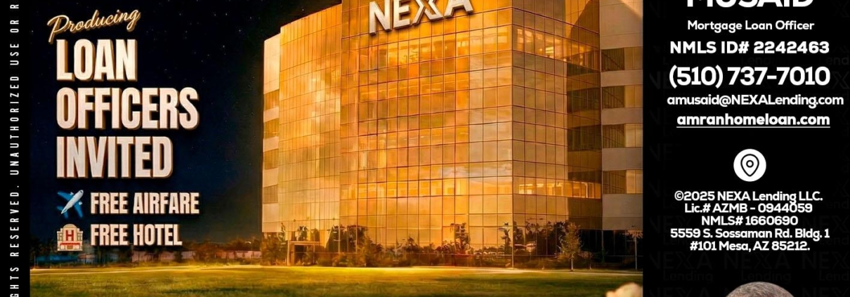 Hi, my name is Amran Musaid. I’m a Loan Officer with NEXA Lending LLC., offering personalized mortgage solutions, fast customized quotes, great rates and service with integrity.