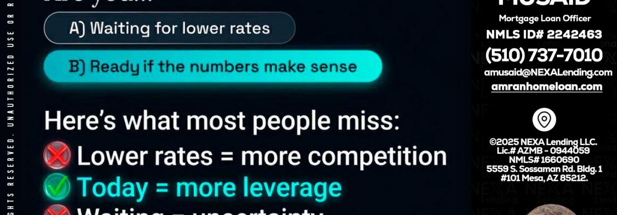Hi, my name is Amran Musaid. I’m a Loan Officer with NEXA Lending LLC., offering personalized mortgage solutions, fast customized quotes, great rates and service with integrity.