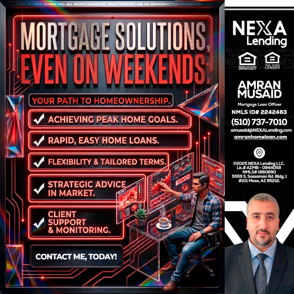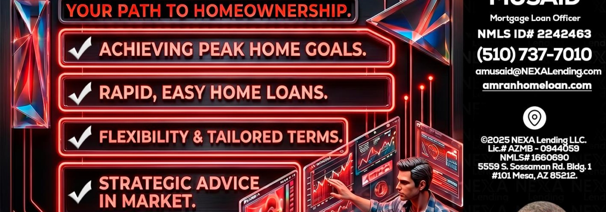 Hi, my name is Amran Musaid. I’m a Loan Officer with NEXA Lending LLC., offering personalized mortgage solutions, fast customized quotes, great rates and service with integrity.
