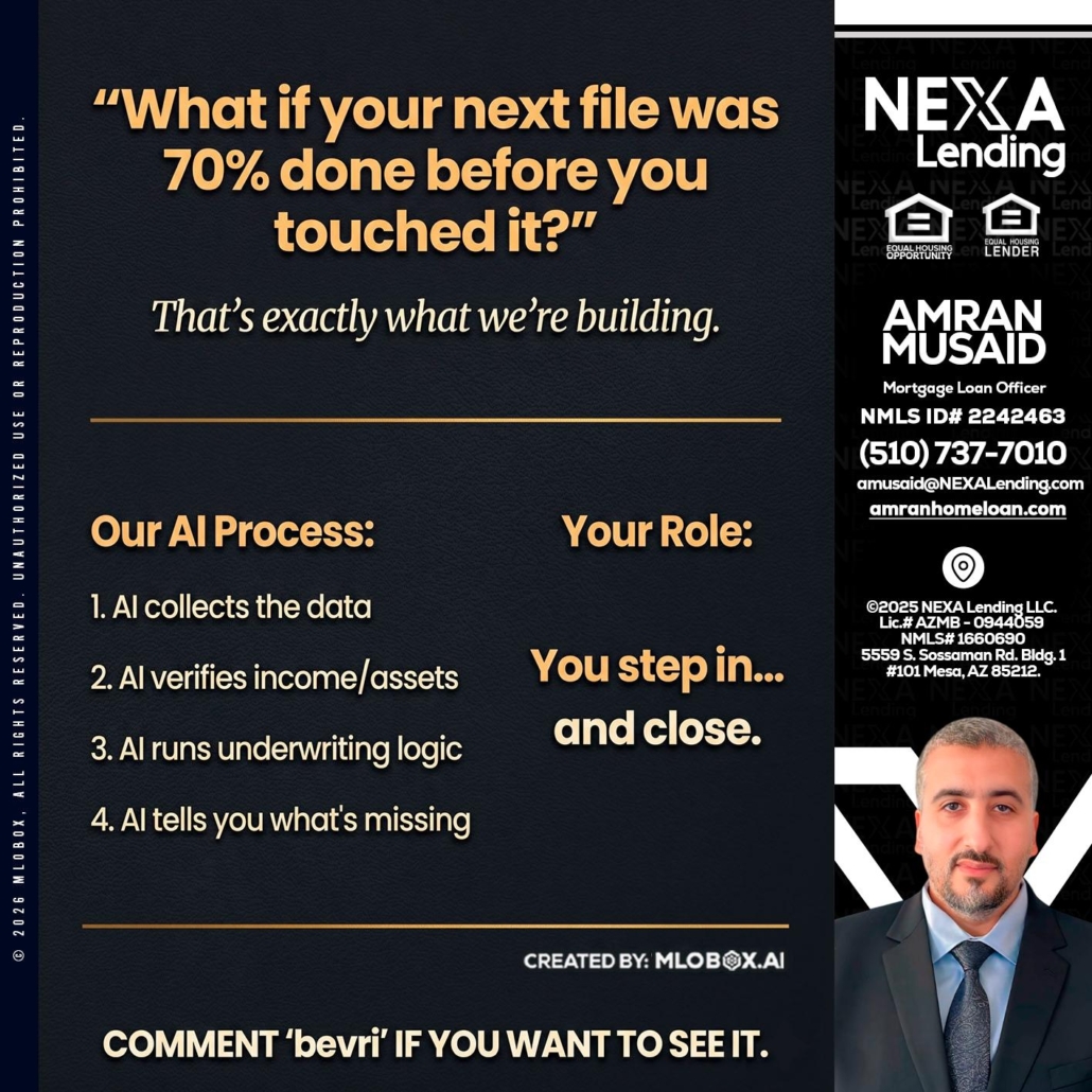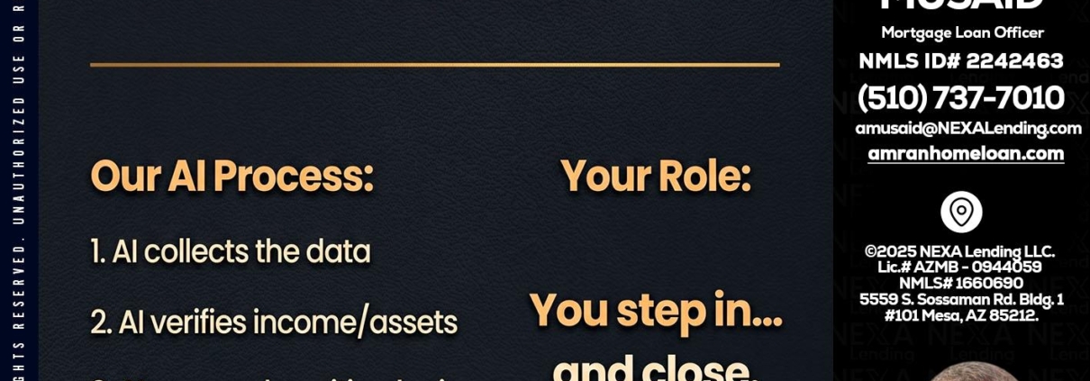 Hi, my name is Amran Musaid. I’m a Loan Officer with NEXA Lending LLC., offering personalized mortgage solutions, fast customized quotes, great rates and service with integrity.