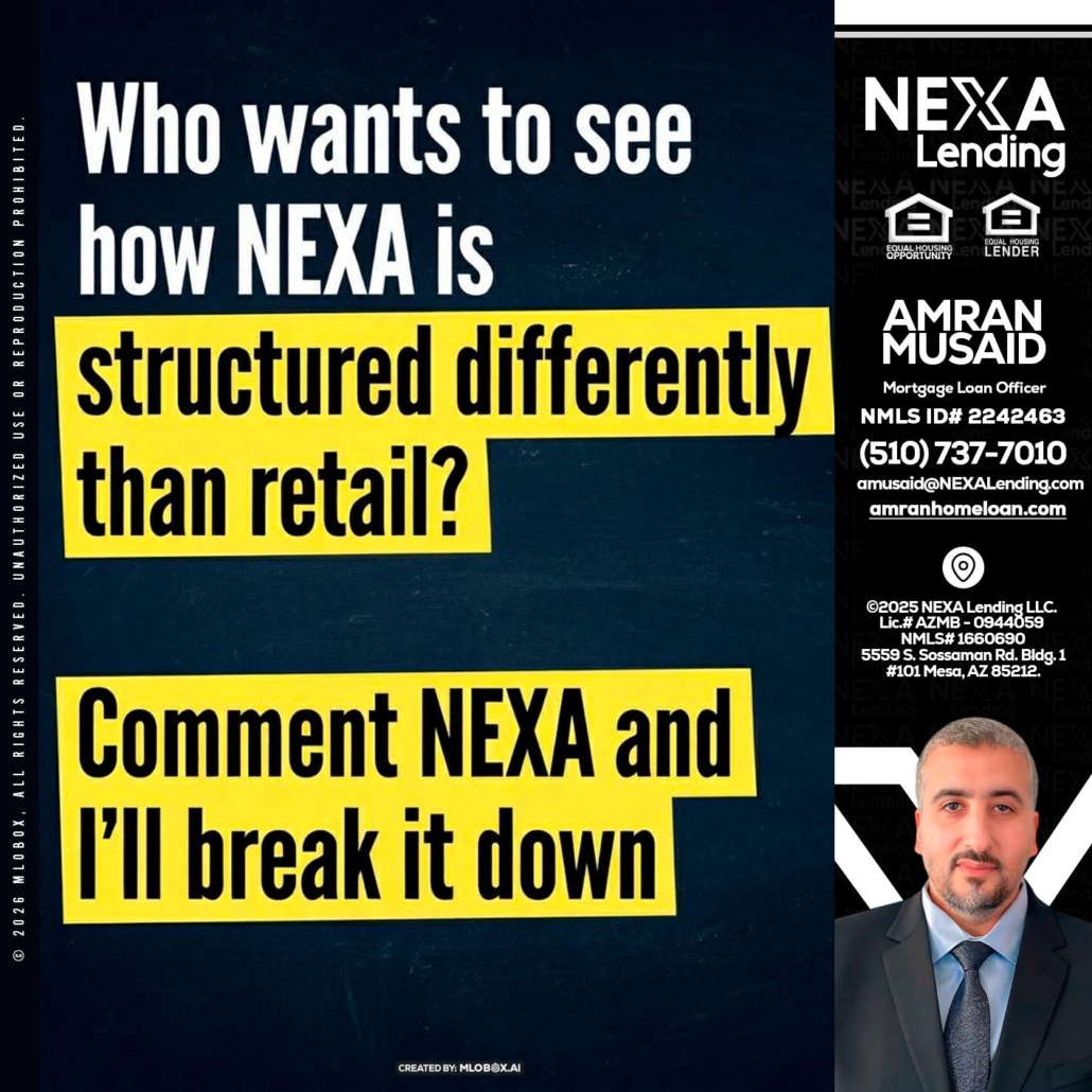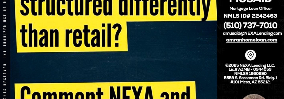 Hi, my name is Amran Musaid. I’m a Loan Officer with NEXA Lending LLC., offering personalized mortgage solutions, fast customized quotes, great rates and service with integrity.